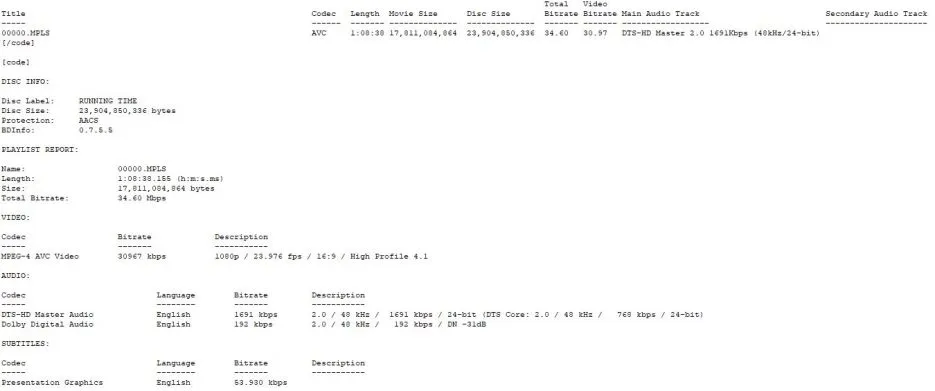 Click for a larger image and a slideshow. ScreencapsFeaturesMenusBD InfoRunning Time BD infoRunning Time Bitrate ViewerRunning Time DTS 2.0 SpekRunning Time color barcodeExtra FeaturesNEW 2K scan and restoration of the original 16mm camera negativeOptional English subtitles for the deaf and hard-of-hearingNEW Presented for the first time on video with the original theatrical stereo mixAudio commentary with writer/director Josh Becker and star Bruce CampbellNEW Run and Gun with Bruce Campbell – interview/featurette (HD; 20:27)Q&A footage from the Freaky Film Festival Premiere at the University of Illinois (unrestored HD; 19:32)Original trailer (HD; 2:18)Reversible cover art from artists Wes Benscoter and Gerry KissellPackaging DetailsRunning Time front coverRunning Time reverse coverRunning Time discHosting screenshots is expensive. If you want to see more galleries, consider donating!