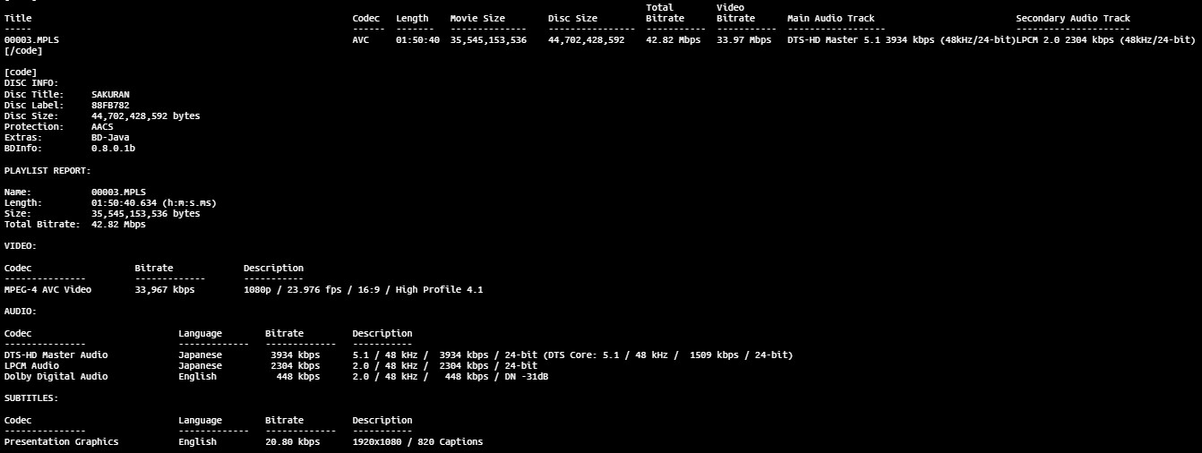 BD Info (what’s this?)