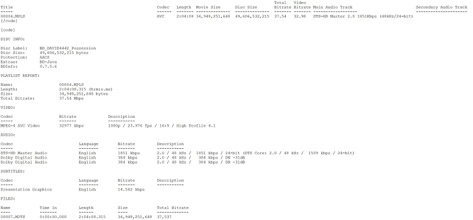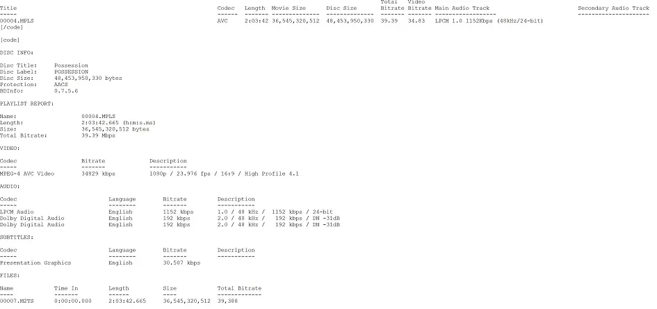 Possession Blu-ray BD Info