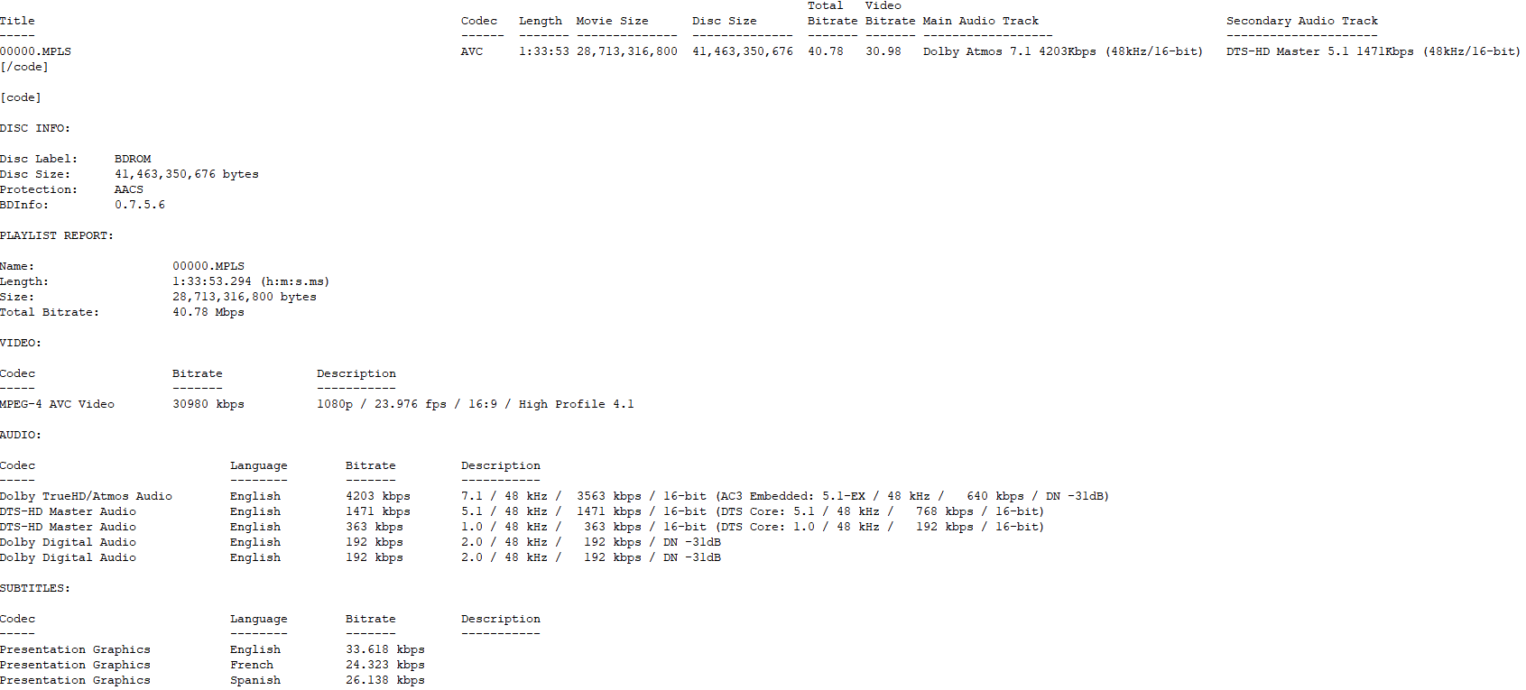 BD Info comparisons