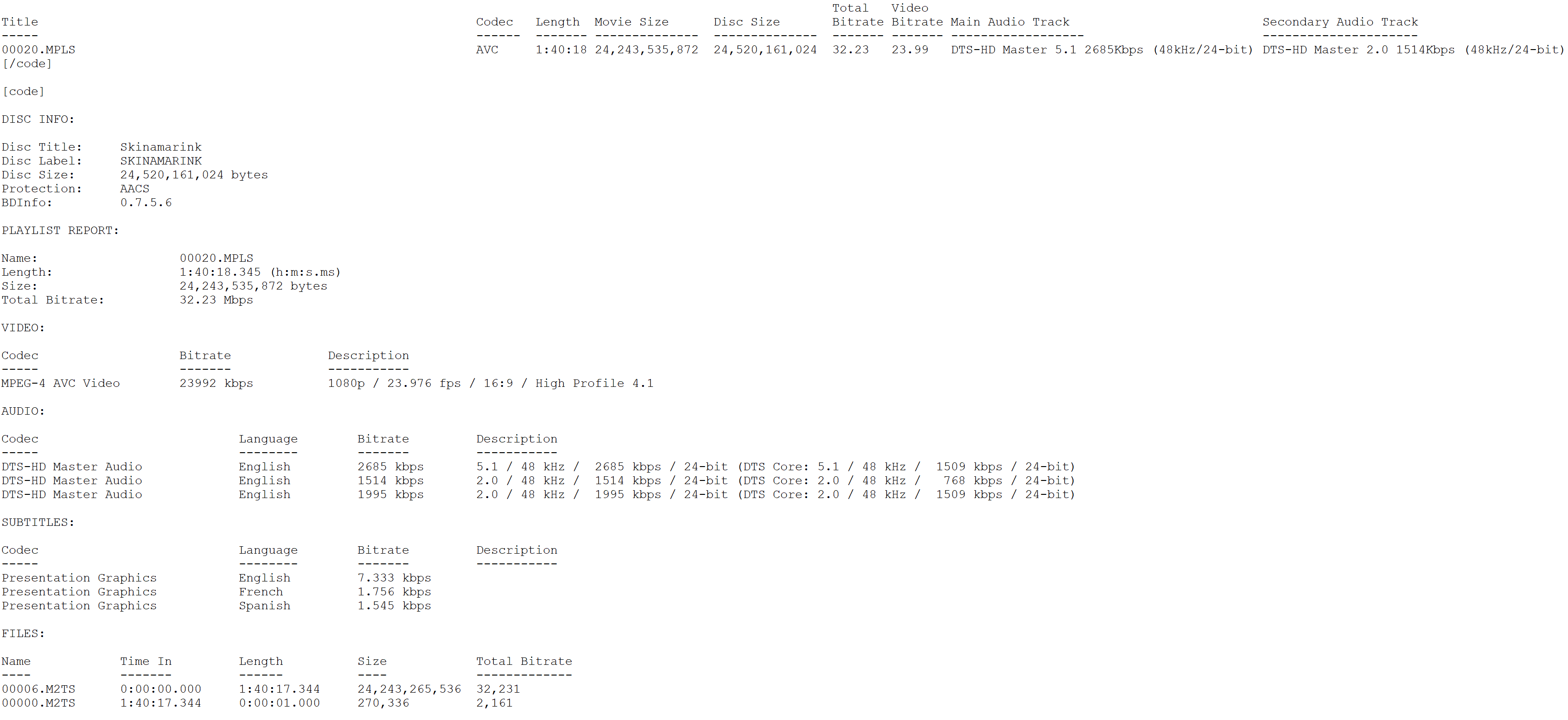 Skinamarink Blu-ray Bitrate Info