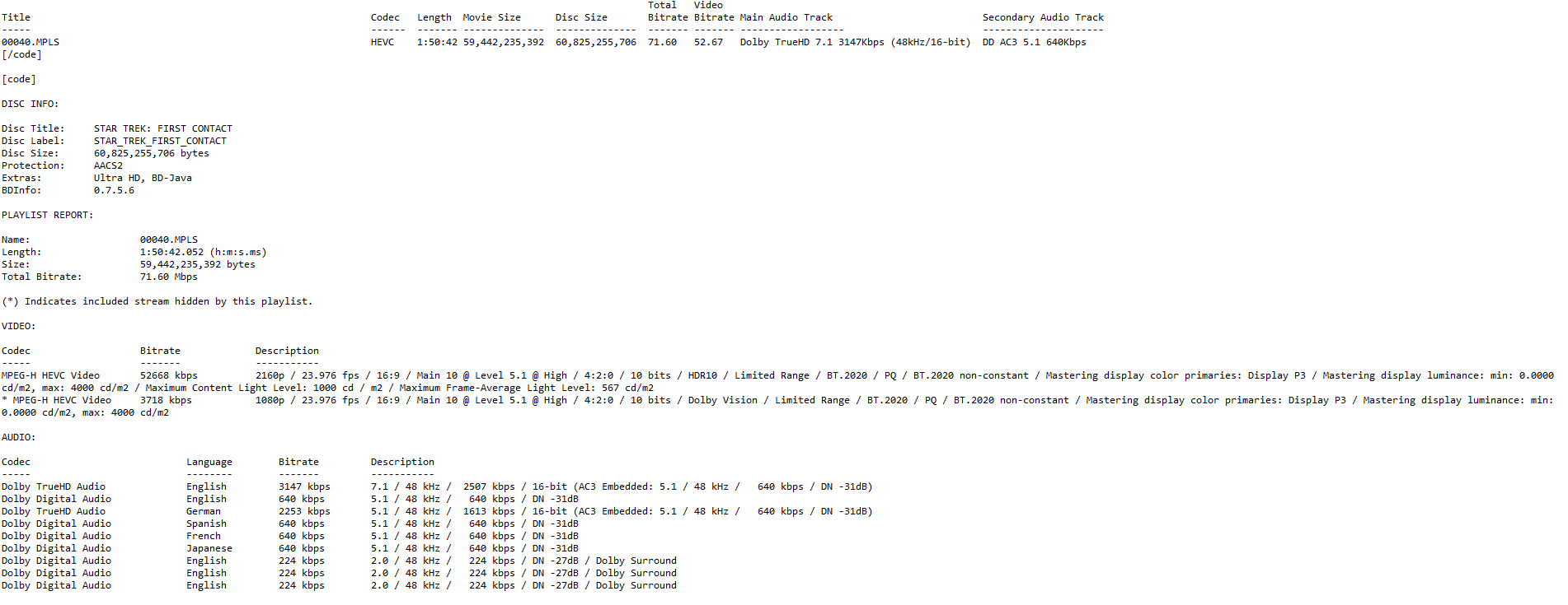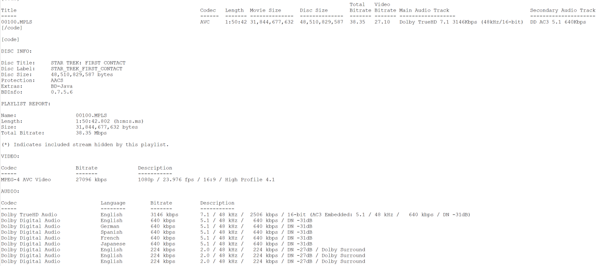 Star Trek: First Contact Blu-ray Settings Menu