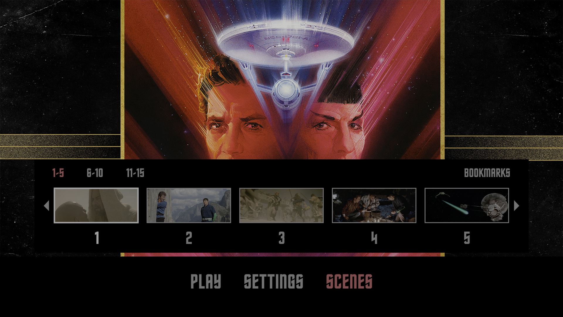 Blu-ray Screencaps Star Trek V: The Final Frontier Blu-ray screencap 1 Star Trek V: The Final Frontier Blu-ray screencap 2 Star Trek V: The Final Frontier Blu-ray screencap 3 Star Trek V: The Final Frontier Blu-ray screencap 4 Star Trek V: The Final Frontier Blu-ray screencap 5 Star Trek V: The Final Frontier Blu-ray screencap 6 Features Harve Bennett’s Pitch to Sales Team The Journey: A Behind-The-Scenes Documentary The Journey: A Behind-The-Scenes Documentary Makeup Tests Makeup Tests Pre-Visualization Models Rockman in the Raw Rockman in the Raw Star Trek V Press Conference Herman Zimmerman: A Tribute Herman Zimmerman: A Tribute Original Interview: William Shatner Cosmic Thoughts That Klingon Couple That Klingon Couple A Green Future? A Green Future? Star Trek Honors NASA Star Trek Honors NASA Hollywood Walk of Fame: James Doohan Hollywood Walk of Fame: James Doohan Starfleet Academy SCISEC Brief 005: Nimbus III Starfleet Academy SCISEC Brief 005: Nimbus III Production Gallery The Gag Reel Deleted Scenes Storyboards Theatrical Trailer TV Spots 4K UHD Menus Star Trek V: The Final Frontier 4K UHD Menu Star Trek V: The Final Frontier 4K UHD Settings Menu Star Trek V: The Final Frontier 4K UHD Scenes Menu Blu-ray Menus