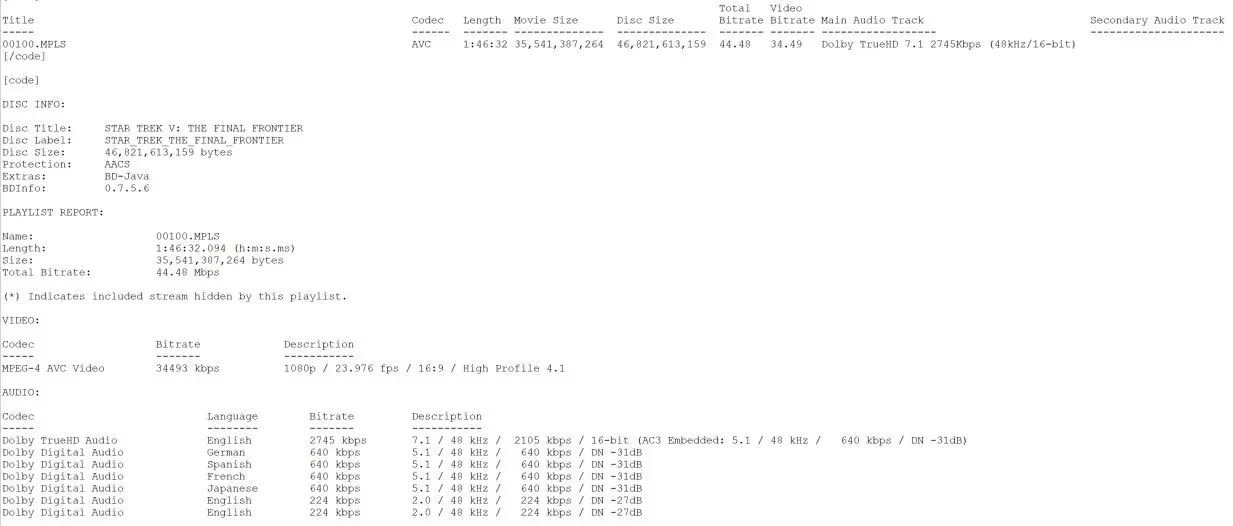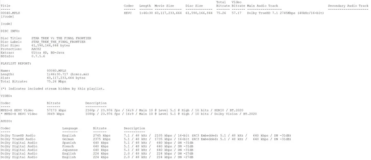 Star Trek V: The Final Frontier Blu-ray Menu Star Trek V: The Final Frontier Blu-ray Settings Menu Star Trek V: The Final Frontier Blu-ray Scenes Menu Star Trek V: The Final Frontier Blu-ray Extras Menu Star Trek V: The Final Frontier 4K UHD BD Info Star Trek V: The Final Frontier Blu-ray BD Info Star Trek V: The Final Frontier 4K UHD Bitrate Info Star Trek V: The Final Frontier Blu-ray Bitrate Info Star Trek V: The Final Frontier 4K UHD Spek Info Star Trek V: The Final Frontier Blu-ray Spek Info Star Trek V: The Final Frontier Blu-ray Color Barcode Extra Features 4K Ultra HD Blu-ray
