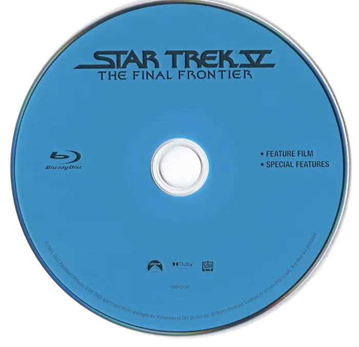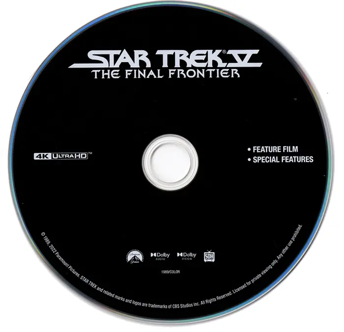 Star Trek V: The Final Frontier UHD Sleeve Star Trek V: The Final Frontier UHD Disc Star Trek V: The Final Frontier Blu-ray Disc