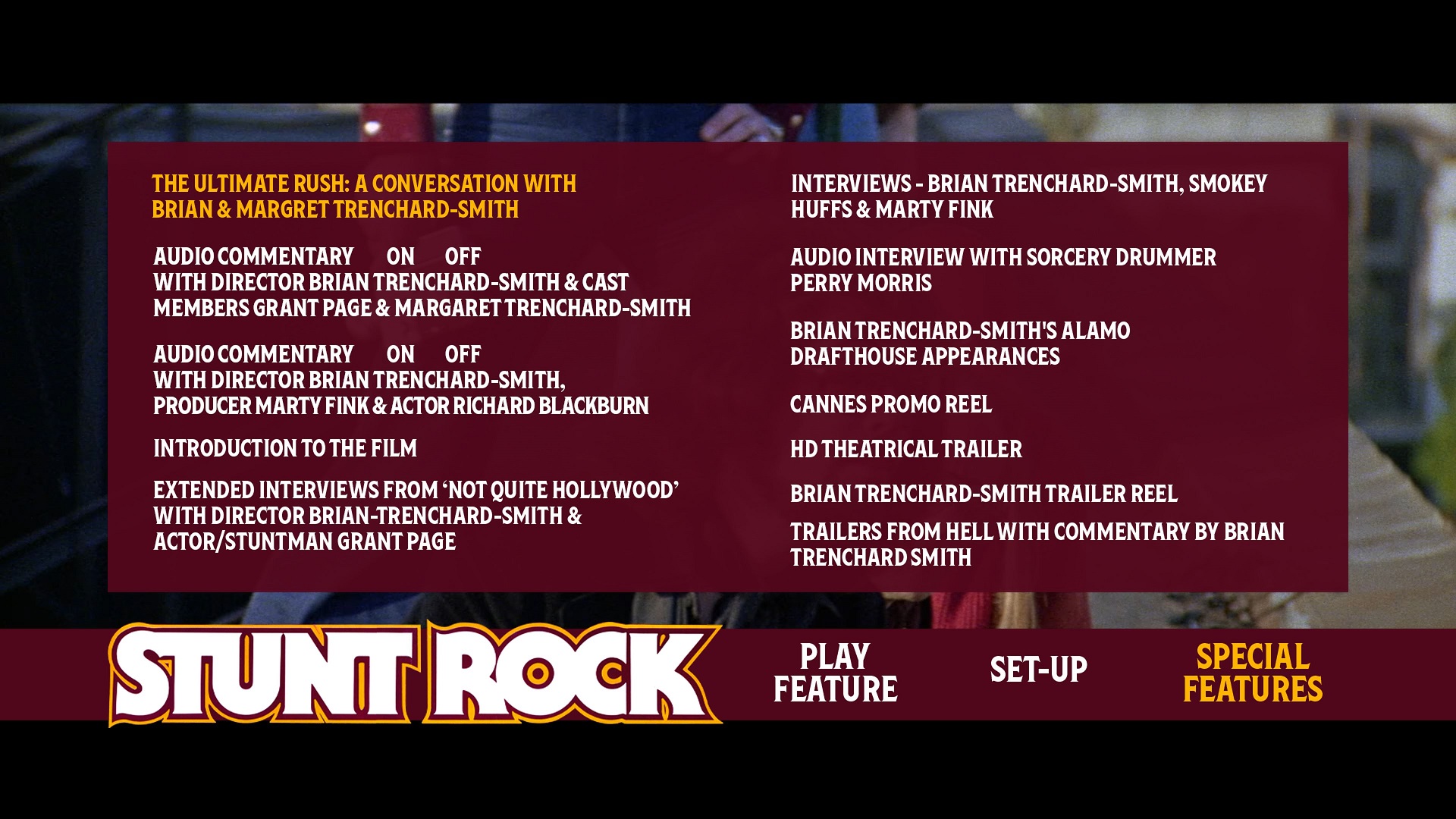 Stunt Rock Blu-ray Extras Menu