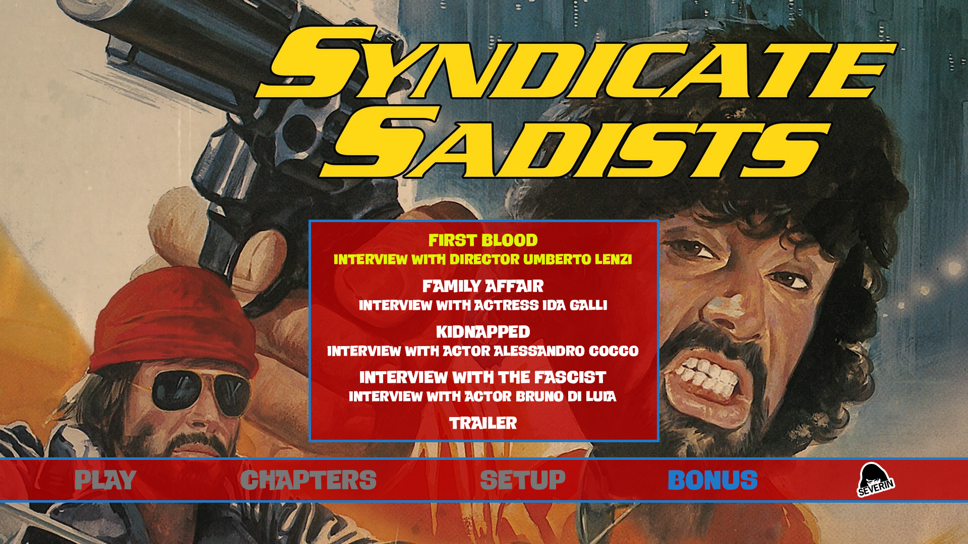 Syndicate Sadists Blu-ray Menu Syndicate Sadists Blu-ray Chapters Menu Syndicate Sadists Blu-ray Setup Menu Syndicate Sadists Blu-ray Extras Menu