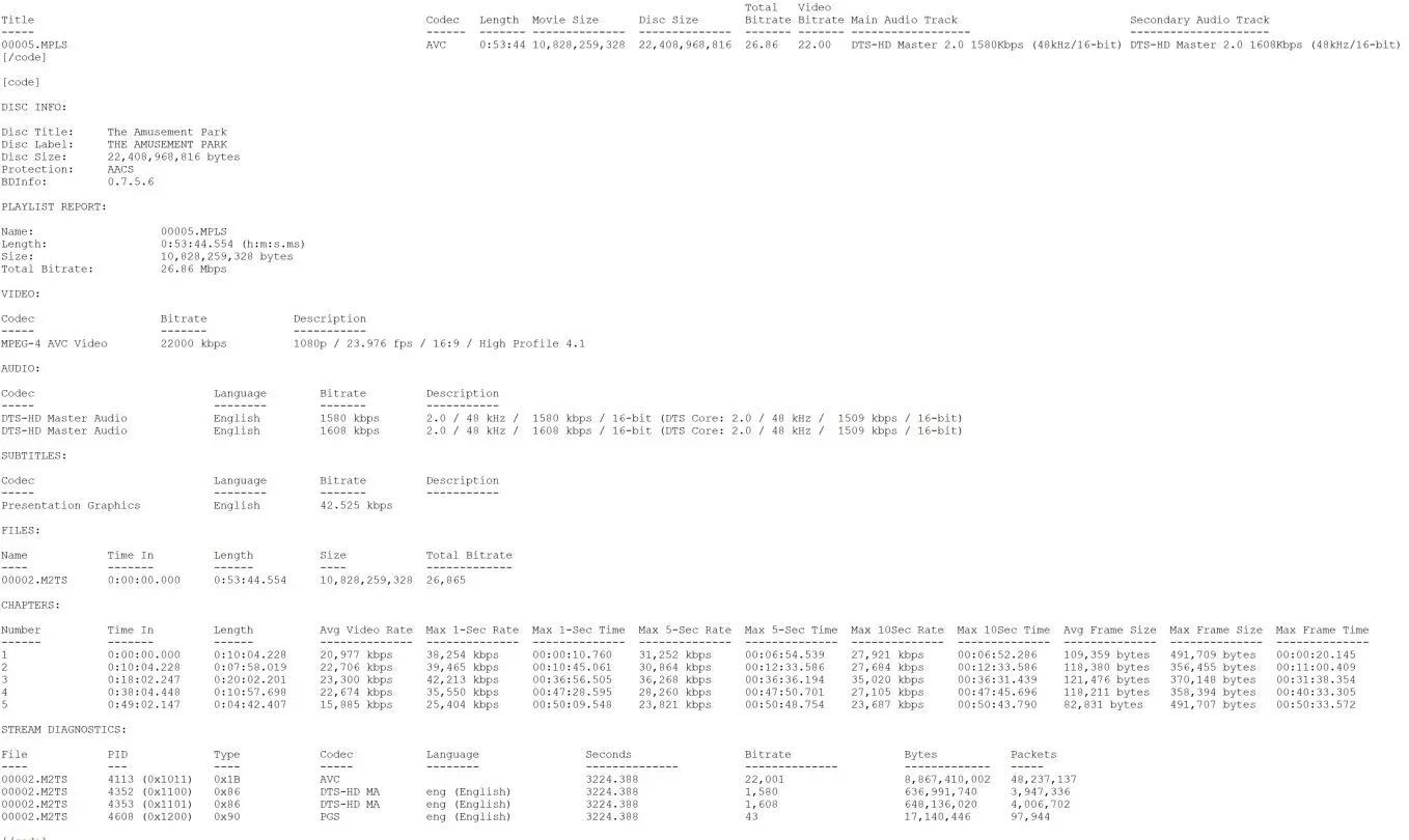 The Amusement Park Blu-ray Bitrate Info