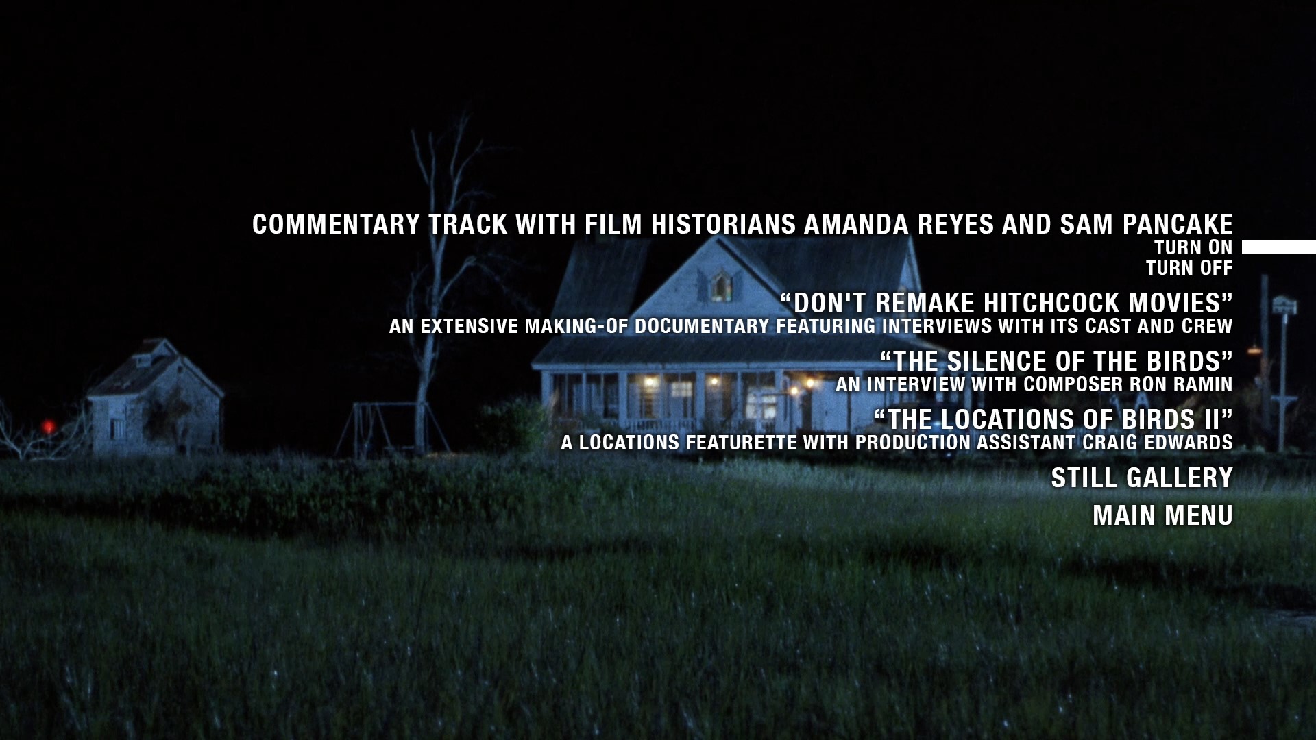 - NEW “The Locations of Birds II” (11 min) – a locations featurette with production assistant Craig Edwards (1080p; 10:45)
