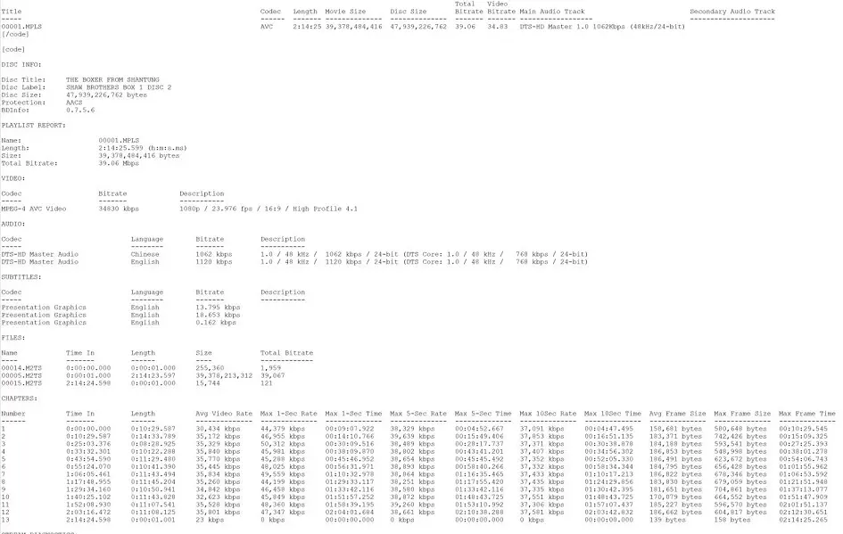 The Boxer From Shantung Blu-ray Bitrate Info