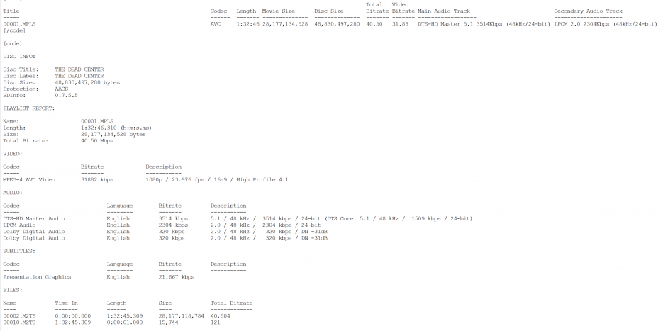 Arrow Video releases The Dead Center on Blu-ray with solid audio and video. There are times where it seemed the blacks in shadows were crushed, but it’s not often. Audio is presented in both 5.1 DTS-HD and 2.0 lossless stereo audio. The 5.1 track makes good use of the rear channels.