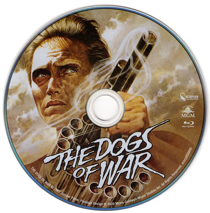 The Dogs of War Blu-ray Front SleeveThe Dogs of War Blu-ray Reverse SleeveThe Dogs of War Blu-ray Disc