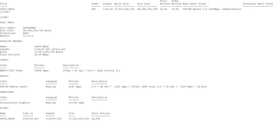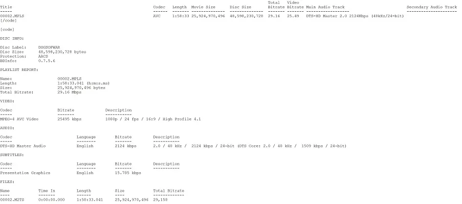 The Dogs of War Blu-ray International Cut BD InfoThe Dogs of War Blu-ray Theatrical Cut BD InfoThe Dogs of War Blu-ray International Cut Bitrate InfoThe Dogs of War Blu-ray Theatrical Cut Bitrate InfoThe Dogs of War Blu-ray International Cut Spek InfoThe Dogs of War Blu-ray Theatrical Cut Spek InfoThe Dogs of War Blu-ray International Cut Color BarcodeThe Dogs of War Blu-ray Theatrical Cut Color Barcode