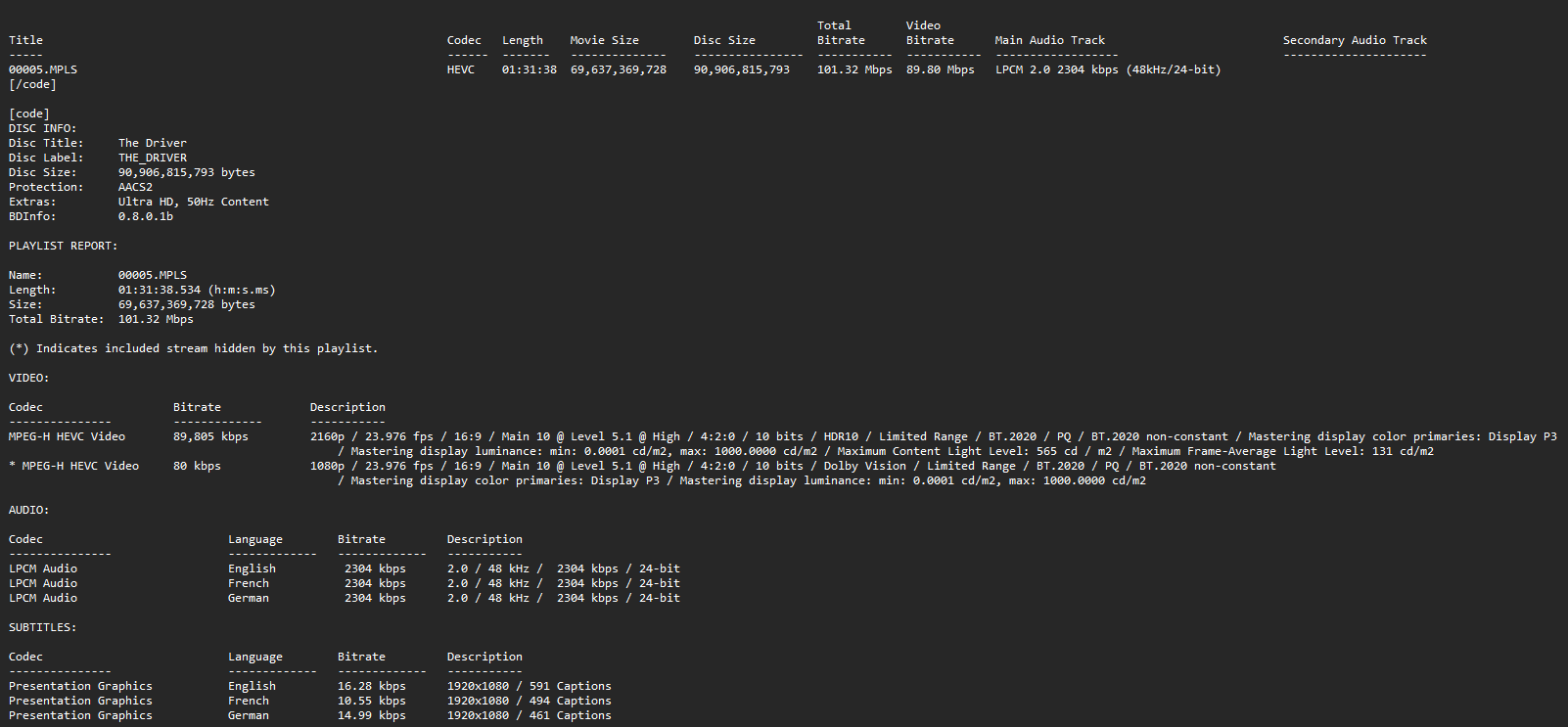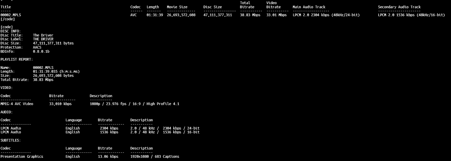 BD Info (what’s this?)