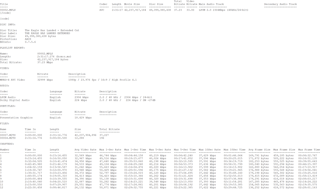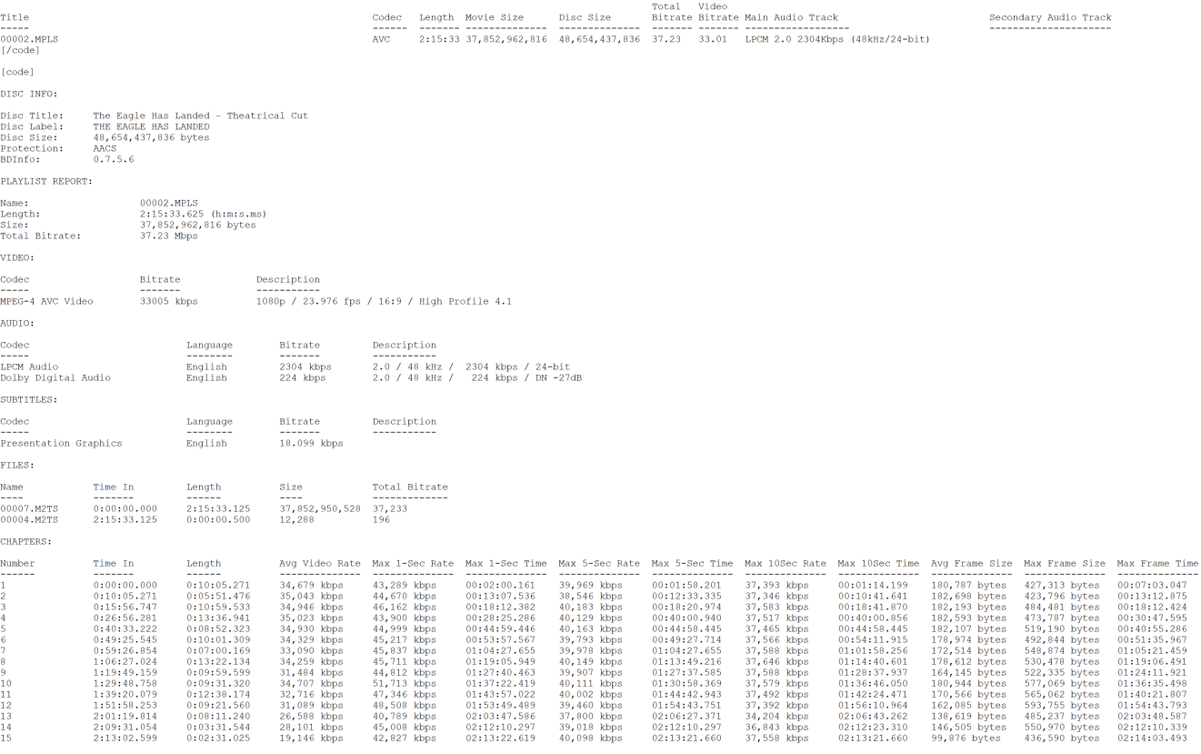 The Eagle Has Landed Theatrical Cut Blu-ray Color BarcodeThe Eagle Has Landed Extended Cut Blu-ray Color Barcode