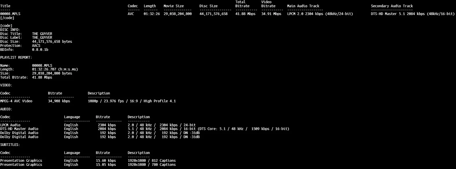 BD Info (what’s this?)