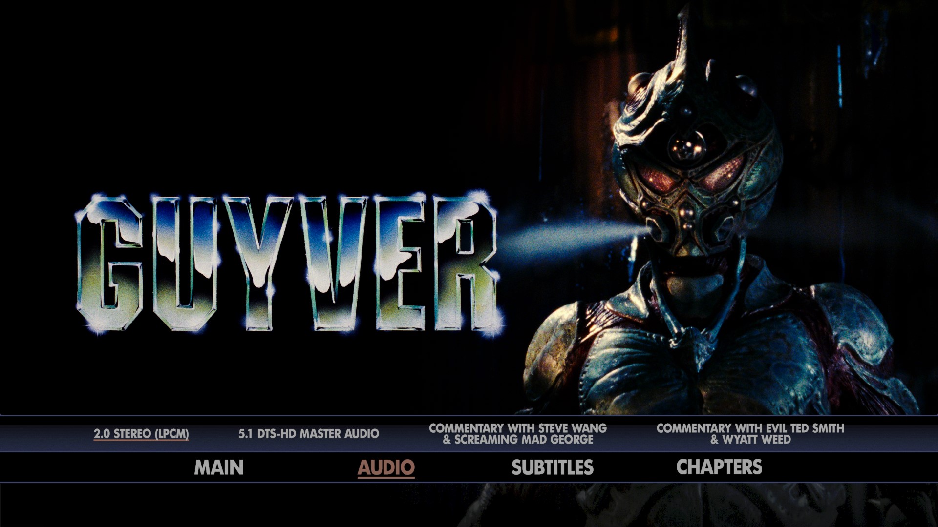 - NEW Commentary with co-directors Screaming Mad George and Steve Wang, moderated by Dom O’Brien, the author of Budget Biomorphs: The Making of The Guyver Films