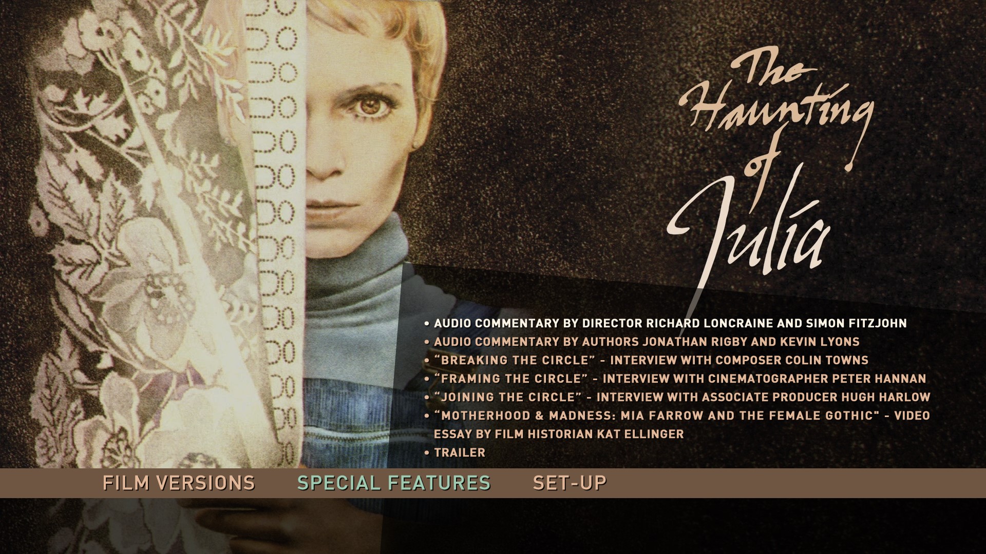 • NEW “Motherhood & Madness: Mia Farrow and the Female Gothic” – Video essay by film historian Kat Ellinger (1080p; 23:42)