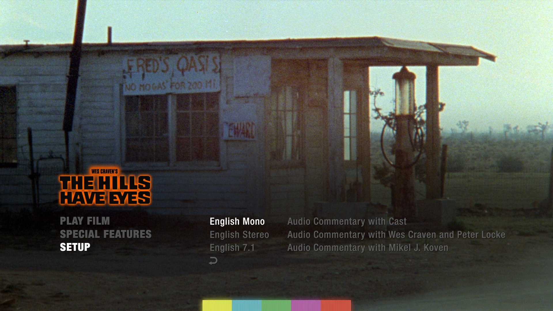 - Looking Back on The Hills Have Eyes – making-of documentary featuring interviews with Craven, Locke, actors Michael Berryman, Janus Blythe, Robert Houston, Susan Lanier, Dee Wallace and director of photography Eric Saarinen (unrestored HD; 54:39)