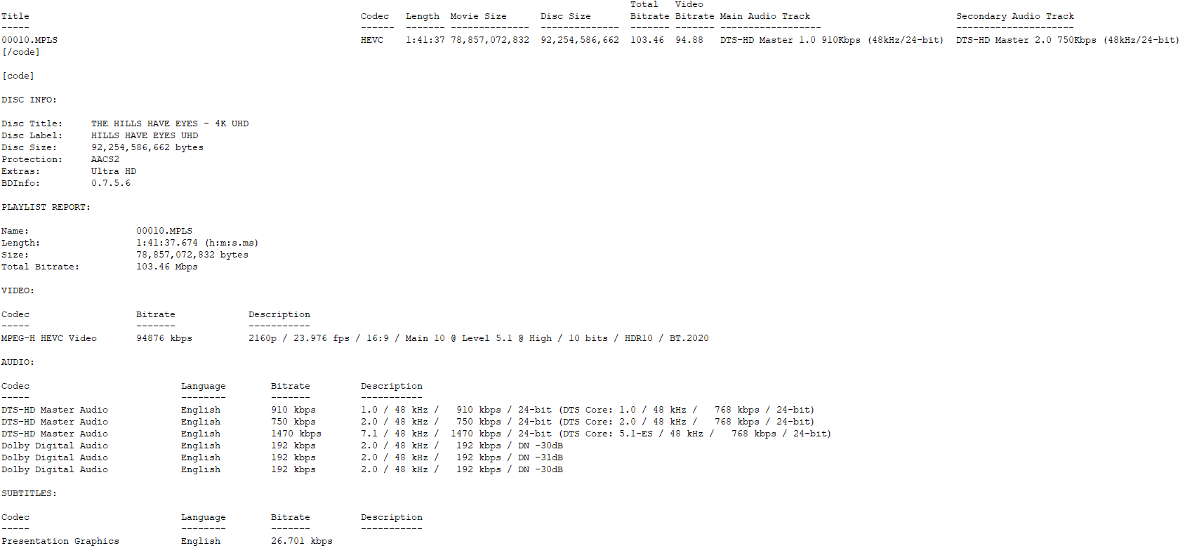 - 4K (2160p) UHD Blu-ray presentation in High Dynamic Range