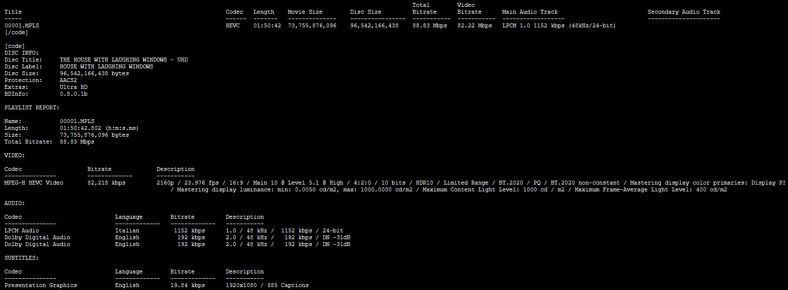 The House with Laughing Windows 4K LPCM 1.0 Italian Spek