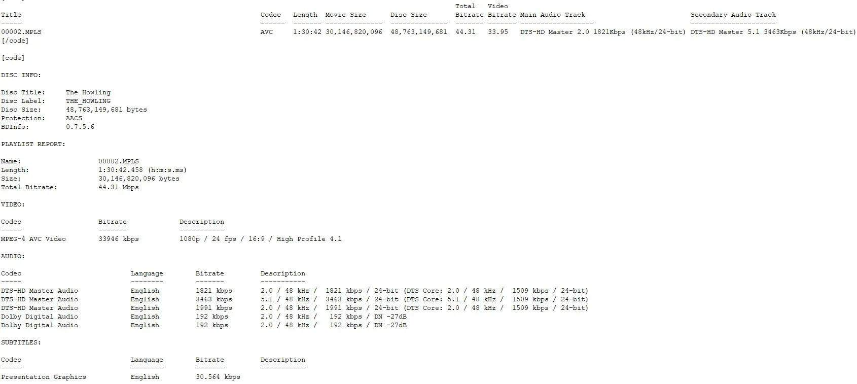 BD Info (what’s this?)