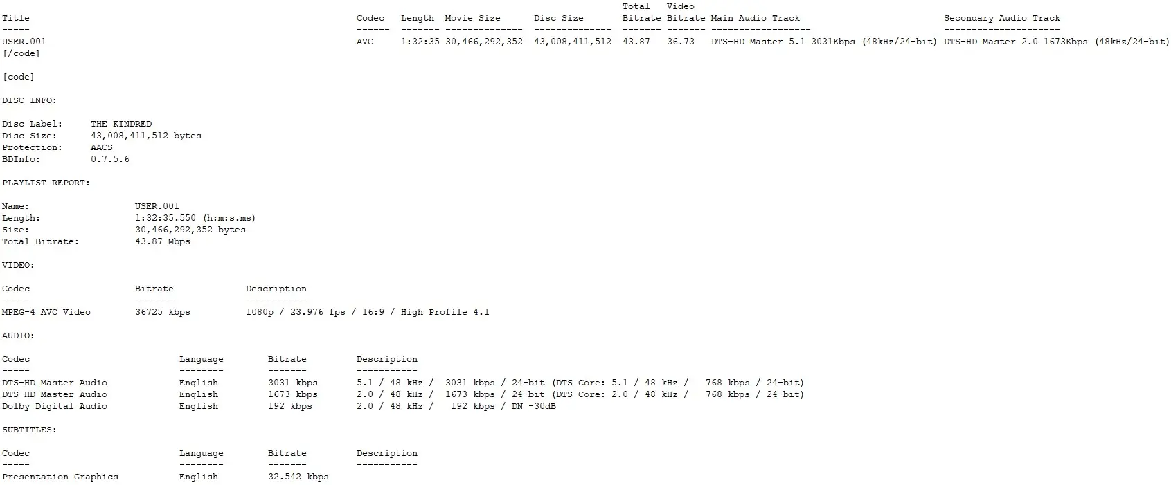 BD Info (what’s this?)