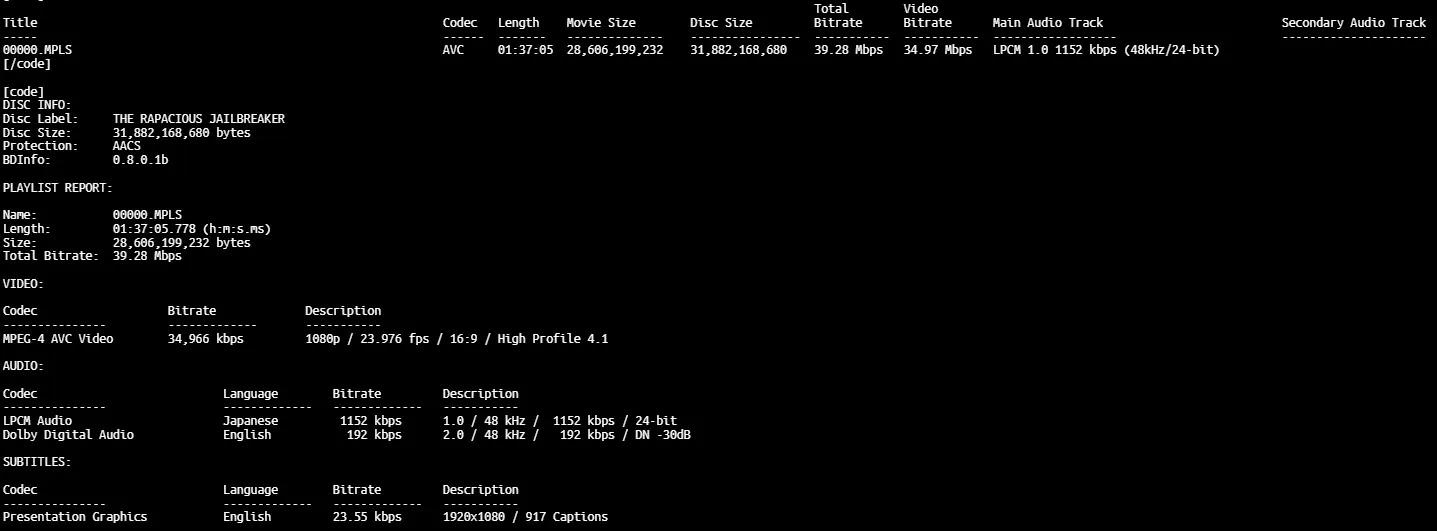 The Rapacious Jailbreaker BD info