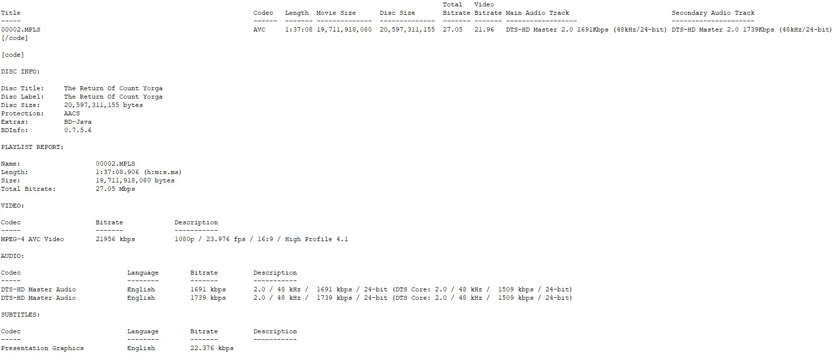 BD Info (what’s this?)