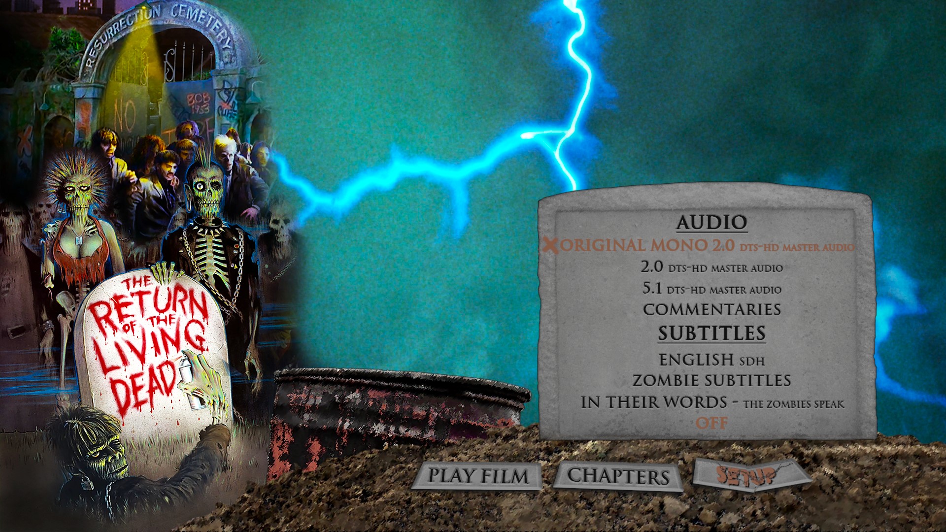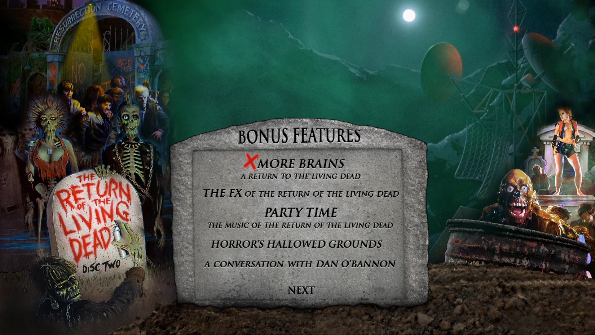 - The Return Of The Living Dead Workprint – Includes 20 minutes Of Additional Footage (480i; 1:48:05)