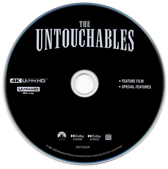 The Untouchables UHD Sleeve The Untouchables UHD Disc