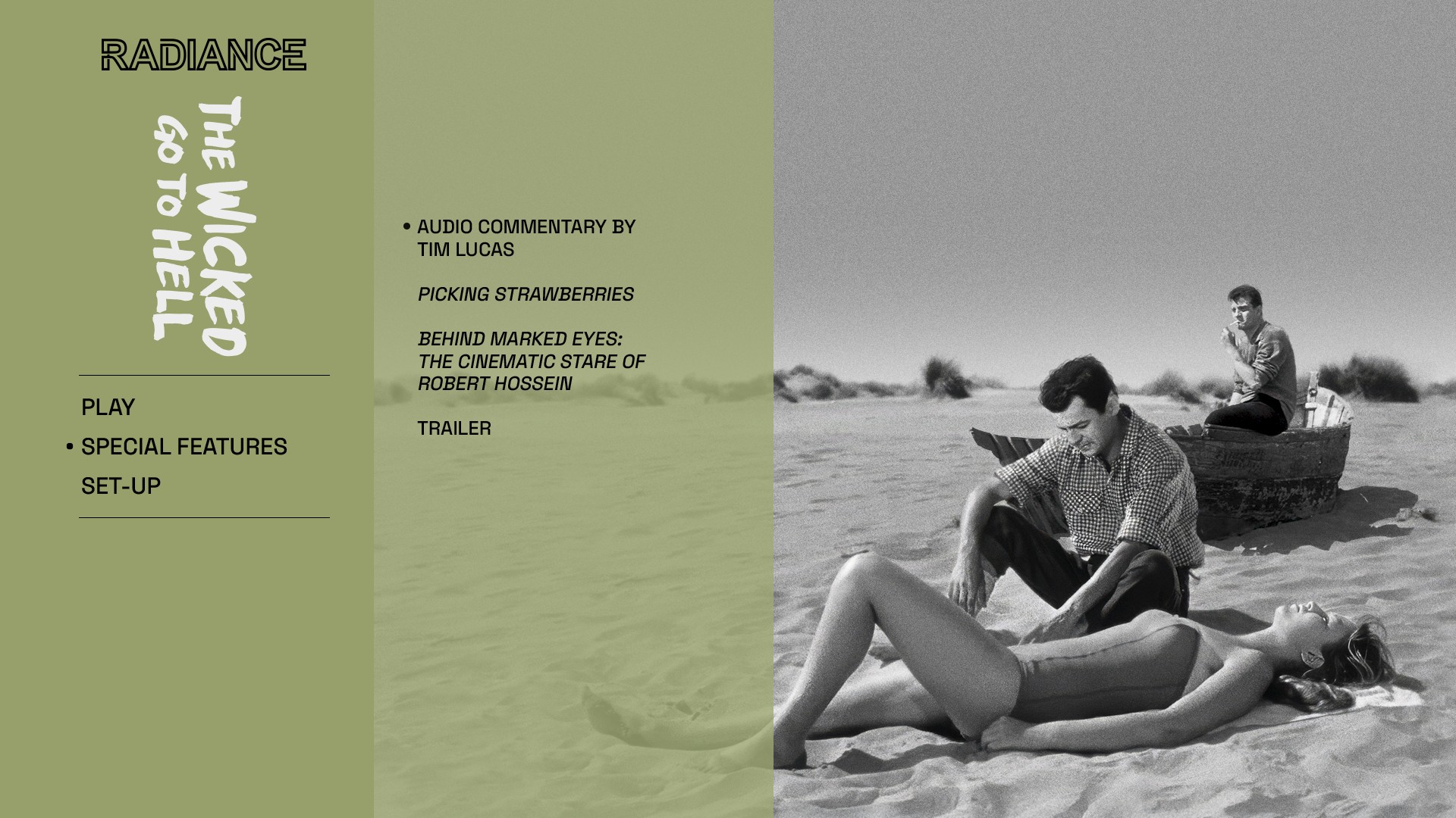 - NEW Behind Marked Eyes: The Cinematic Stare of Robert Hossein – A featurette by Howard S. Berger about Hossein and his work (1080p; 27:04)