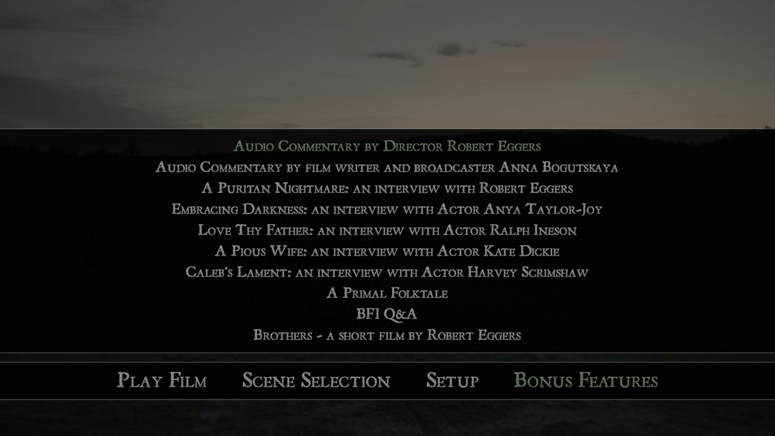 - BFI London Film Festival Q&A with Robert Eggers, Anya Taylor-Joy, Ralph Ineson and Producer Jay Van Hoy (1080p, 10:40)