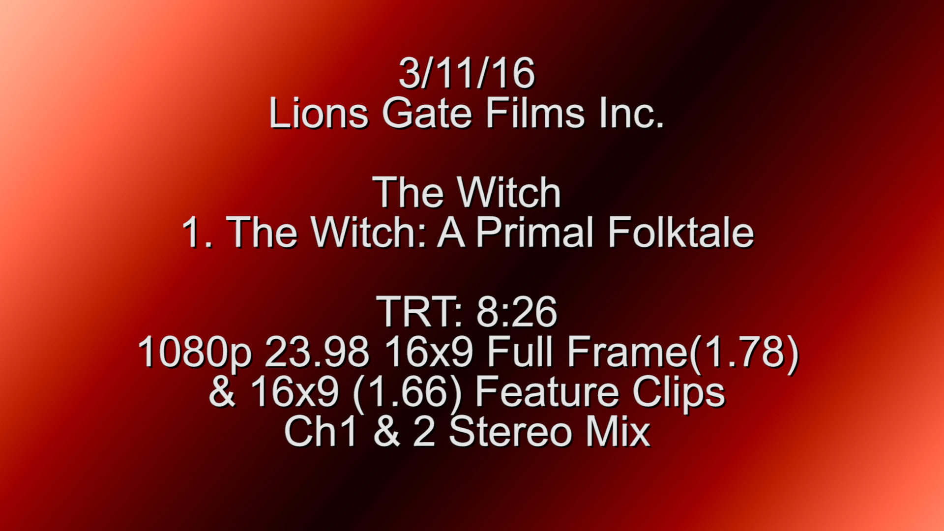 - A Primal Folktale: features interviews with Robert Eggers and cast (1080p, 8:32)