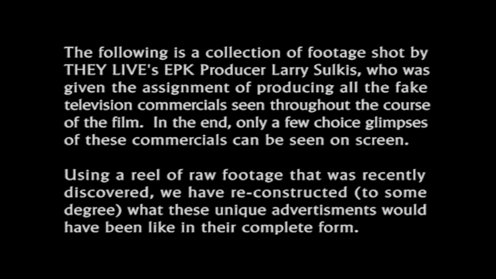 - Original “The Making Of They Live” (unrestored HD; 8:02)