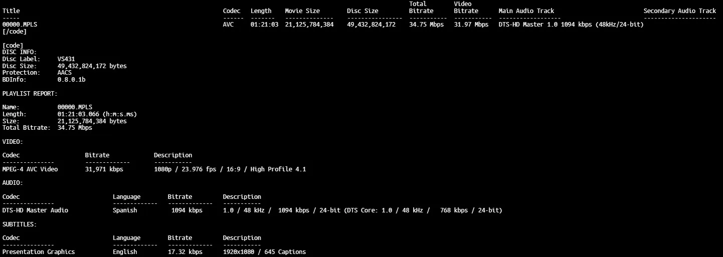 BD Info (what’s this?)
