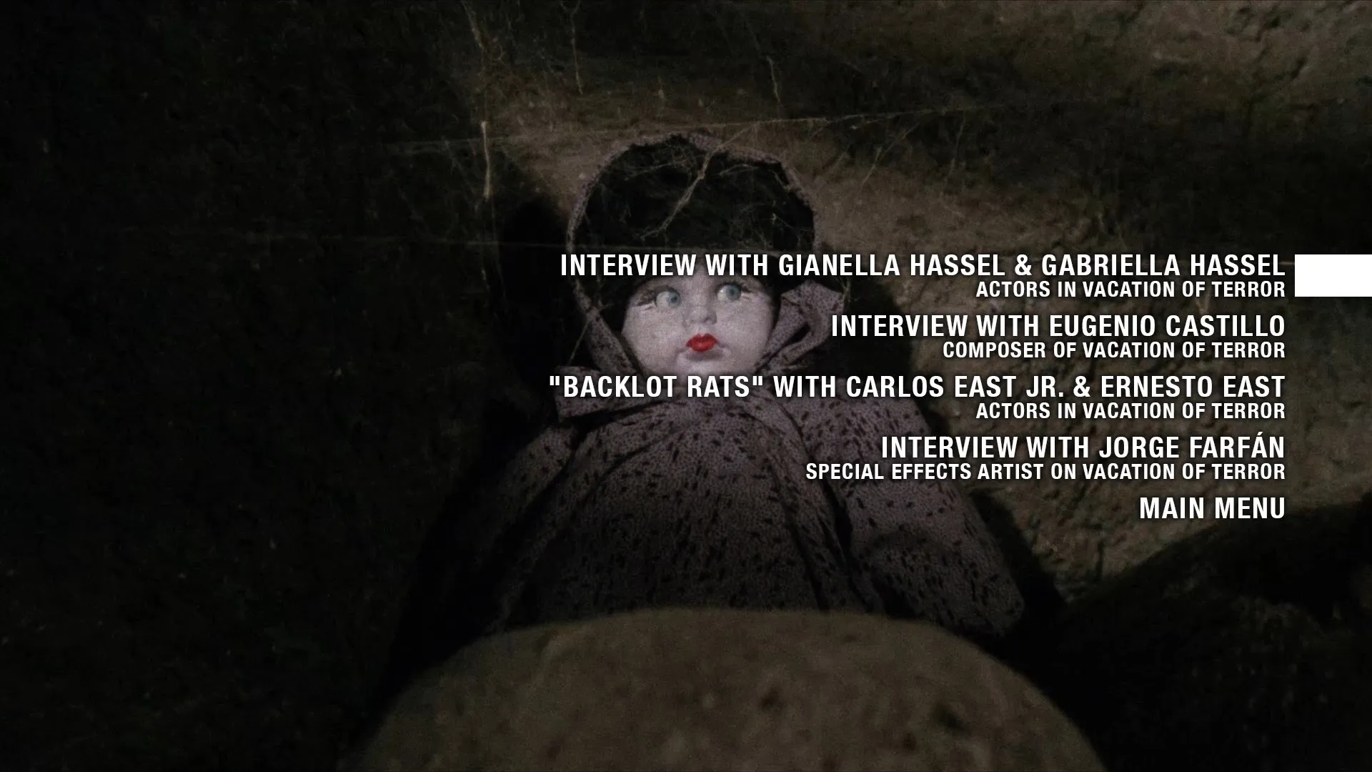 - NEW Video interview with Jorge Farfán, special effects artist on Vacation of Terror (1080p; 12:56)