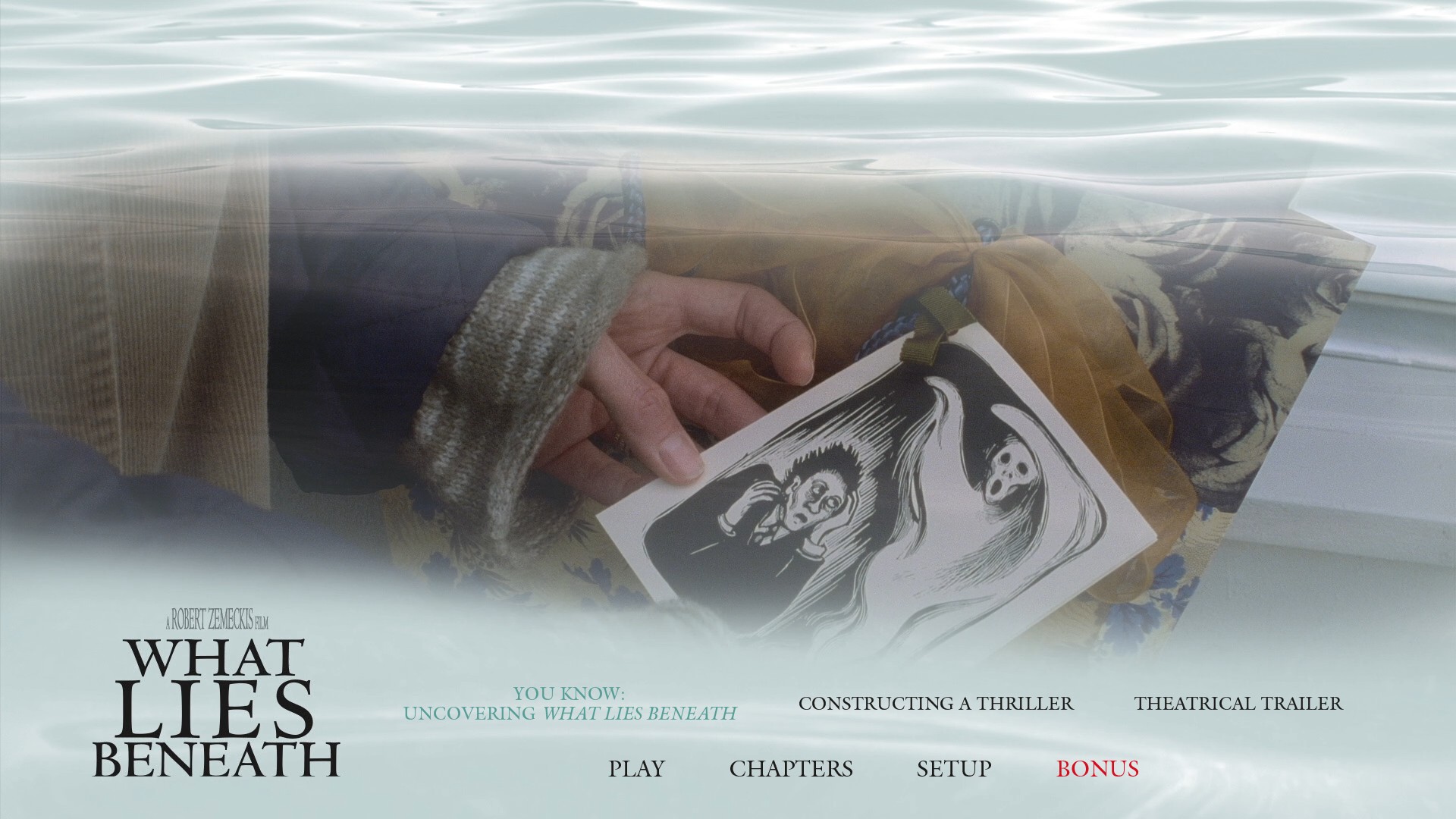 - NEW “You Know: Uncovering What Lies Beneath” – A Feature-Length Retrospective Documentary Including Brand-New Interviews With Robert Zemeckis, Producers Steve Starkey and Jack Rapke, Writers Sarah Kernochan and Clark Gregg, Cast Member Amber Valletta, Director Of Photography Don Burgess, Production Designer Rick Carter, Costume Designer Susie DeSanto, Composer Alan Silvestri, Visual Effects Supervisor Robert Legato, Special Effects Supervisor Shane Mahan, and Puppeteer Jason Matthews (1080p; 1:22:30)